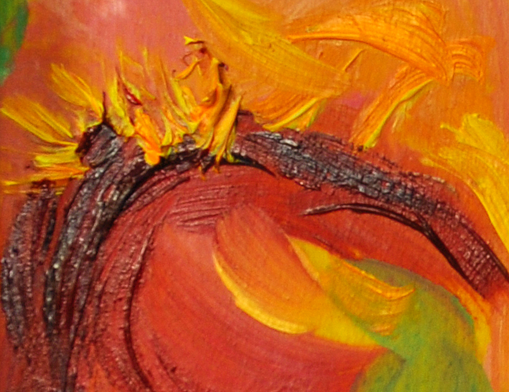 You will be able to see the brushstrokes in the close up photos below.