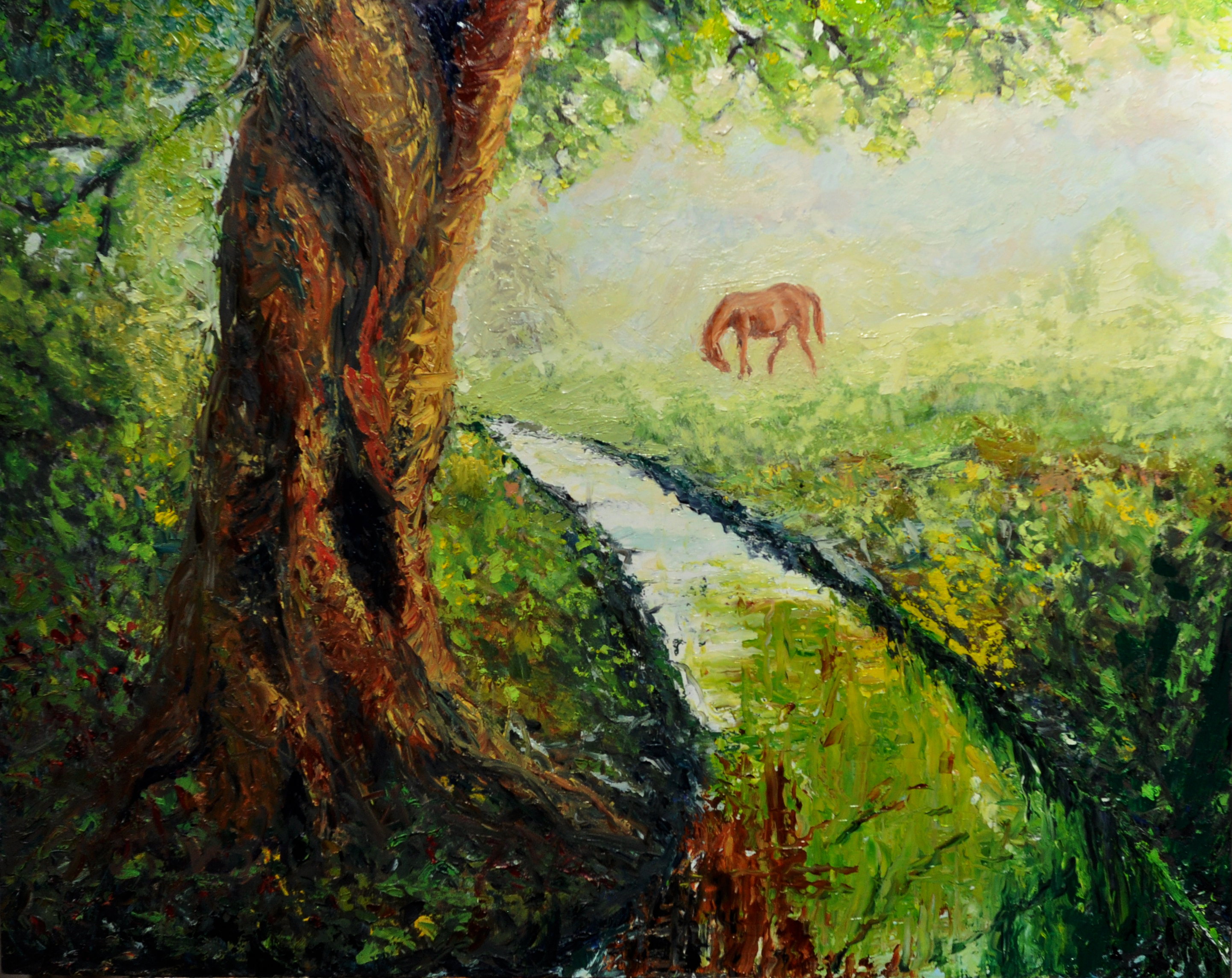 The water in this painting is a symbol for Living Waters, water that satiate the dry and thirst land …you will never thirst again because it is the water of life, it is the Life Giver dwelling us and continually flows through us quickening us and pouring out His life giving truth to others that we touch.